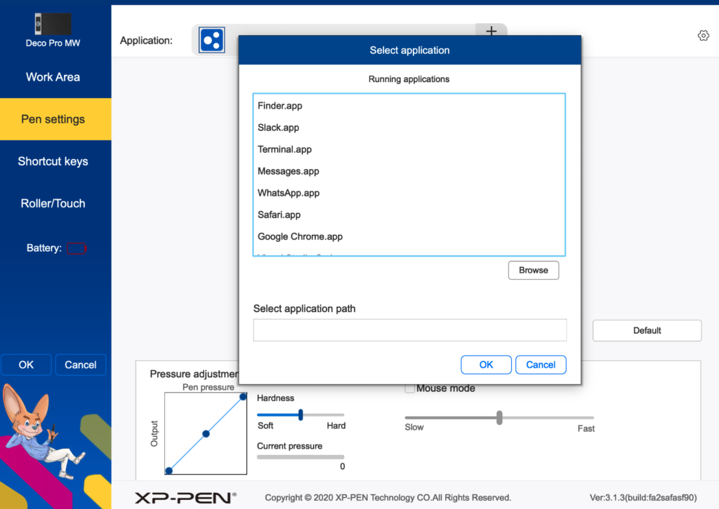 drivers. For XP-PEN you also need to add your browser to the Pen Tablet application list.
